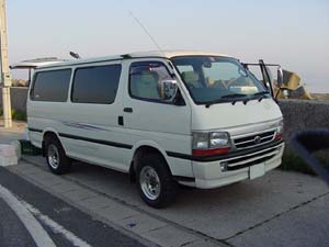 | 過去にストリート(ホンダ)、タウンエース4WD(トヨタ)とワンボックスを乗り継いできた。ストリートにYZ80を二台積み込んでレースに出掛けていた頃が懐かしい。タウンエースは後部座席を取外してバイクを積んでいた。夏は2人乗り、冬は8人乗りになっていが、ハイエースになってからは、あのわずらわしさがなくなったね。エンジンはディーゼル3000ccなのでちょっと音がうるさい。冬はスタッドレスタイヤを装着し雪山を爆走する。フルタイム4WDなのでチェーンは巻いた事はない。高○さんいわく「四駆じゃなければ車じゃない。」と言うとおうり、4WDじゃないと自分達の趣味は成り立たない。毎年車検は痛いけど潰れるまで乗りたいの〜。 |