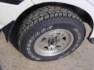 タイヤはBSのDUELER/AT694。多少の雪なら大丈夫との事。ぬかるんだダートでも走れる。深いタイヤパターンに小石が噛むらしくロードノイズが気になる時がある。 |