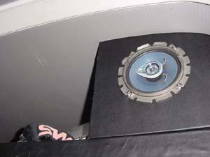ウーハーが2発。後部の荷室がウーハーボックスになるという発想。ビンビンきます。荷室で寝てると殺人的な低音が味わえます。 |