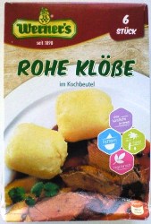 Werner's seit 1898 Freital www.werners-spezialitaeten.de ![]() Rohe Klöße im Kochbeitel 6 Stück ohne Palmöl ohne Farbstoffe ohne Geschmacksverstärker Vegetarisch Nov. 2024 |