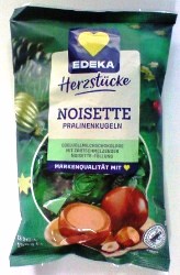 Edeka Hamburg ![]() Herzstücke Noisette Pralinenkugeln Edelvollmilchschokolade mit Zartschmelzender Noisette-Füllung Markenqualität mit Liebe Nov. 2025 |